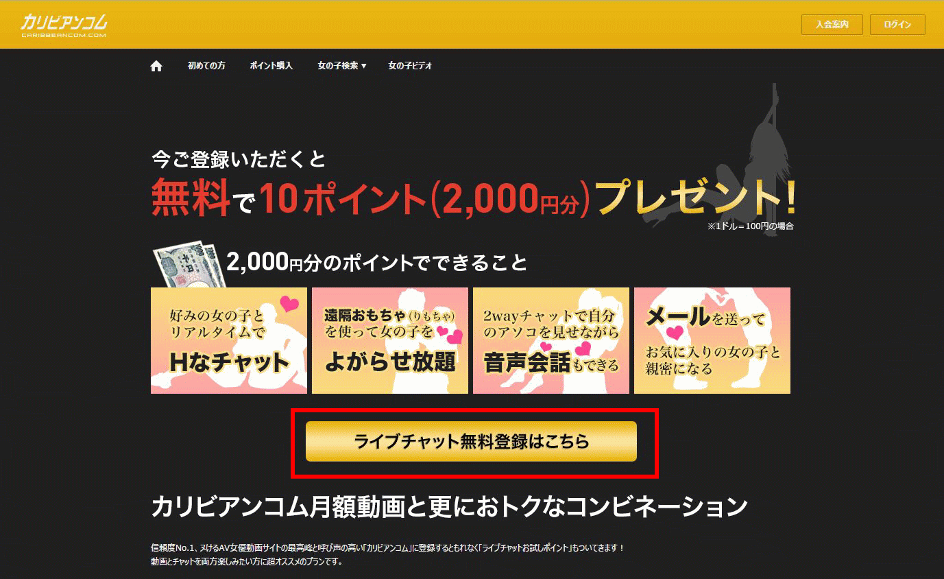 ※DXLIVEや完熟ライブに登録している方は、DXLIVEや完熟ライブに登録した時のアカウントでログインができますので、カリビアンコムガールへの新規登録はできません。