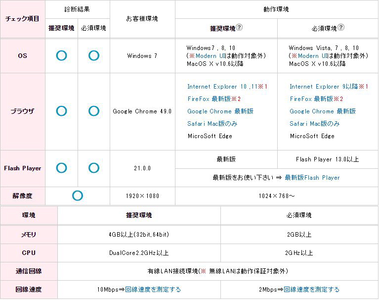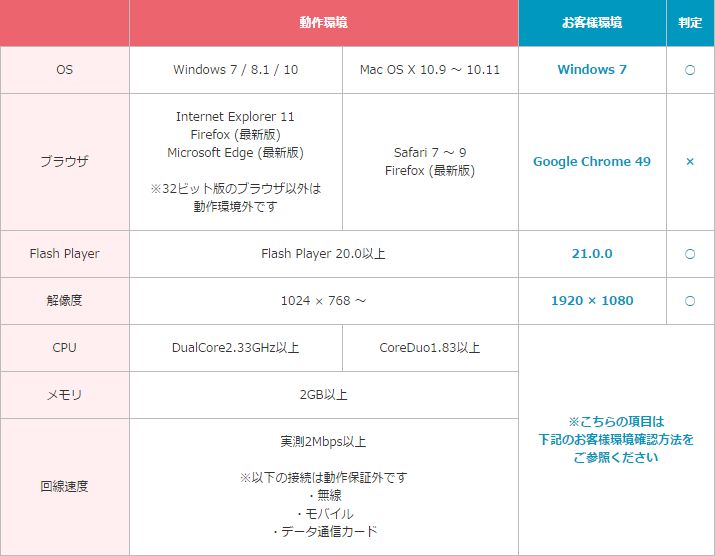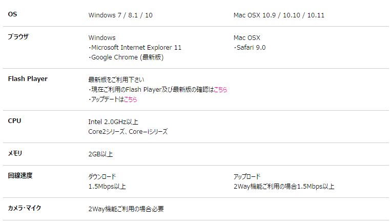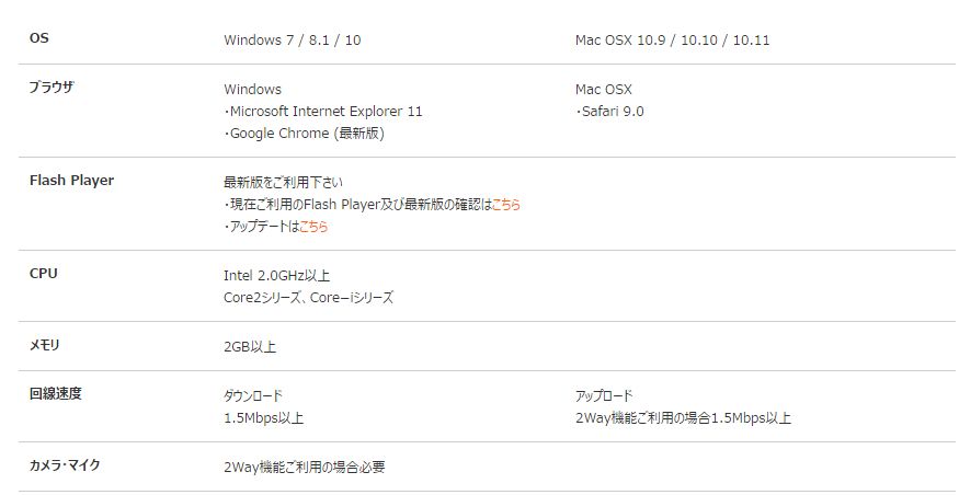 各ライブチャットサイトが推奨しているシステム動作環境