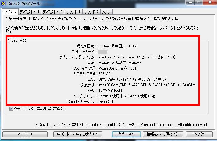 Windowsのパソコンスペックの調べ方(Windows7で説明)